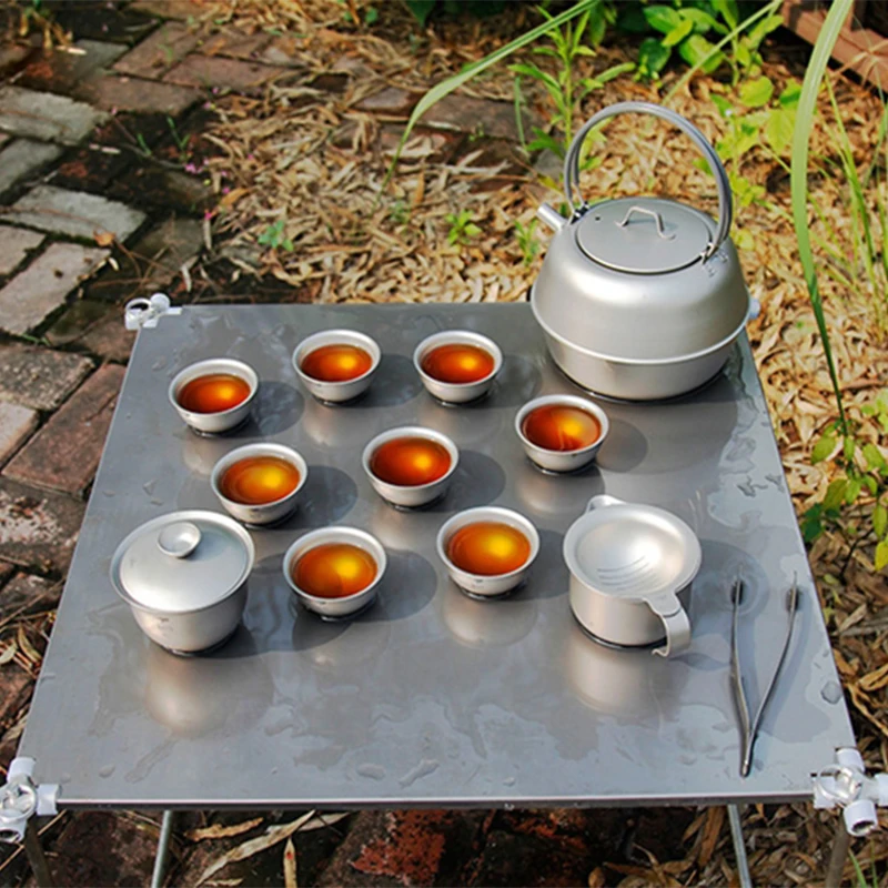 BEST QUALITY 12pcs Kung Fu Tea Set Chinese Travel Titanium Portable Tea Set Drinkware Set with Strainer Teapot K